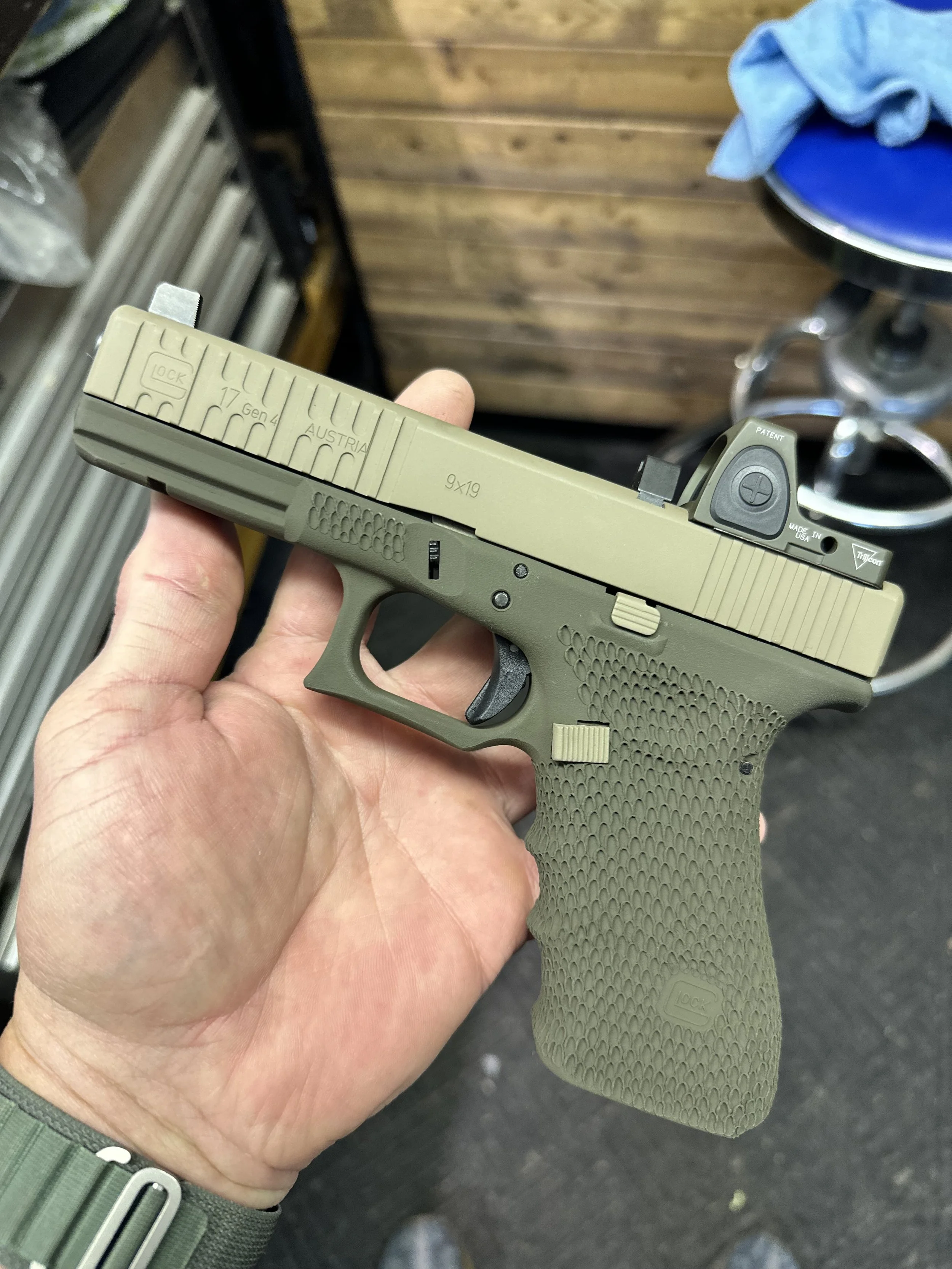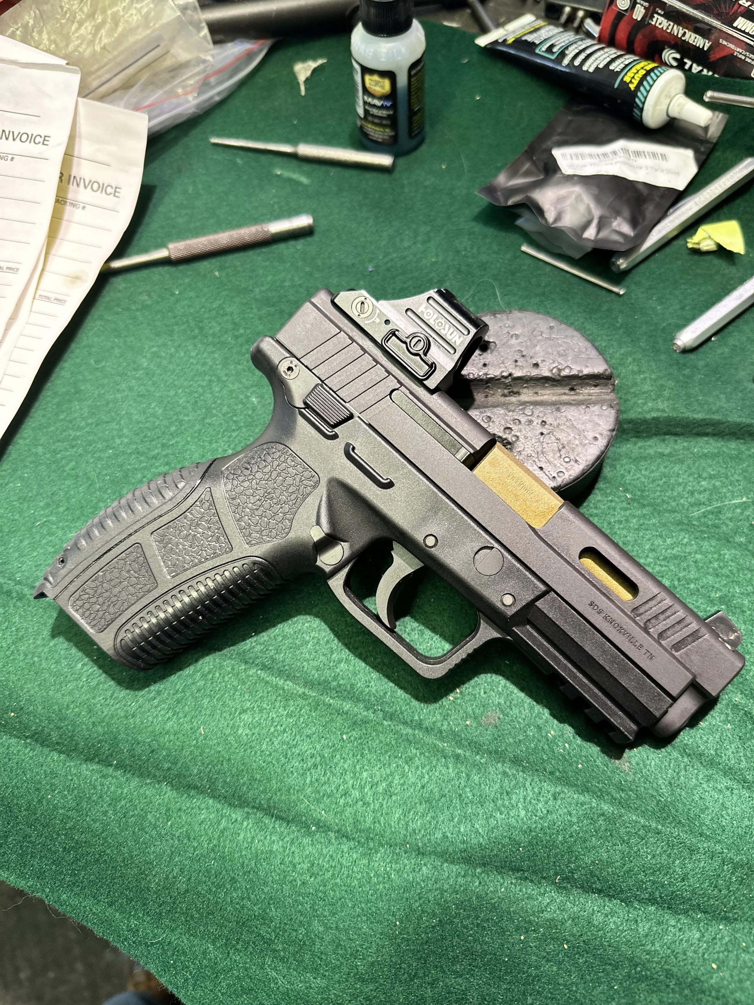 We can customized any make or model of polymer framed handgun. From simple trigger jobs to complete custom defensive carry and full house competition handguns. The options are endless; grip reductions & stippling, slide machining i.e. lightning cuts,cocking serrations, porting, low mount red dot sight cuts, match barrel fitting, and endless other options are available.......