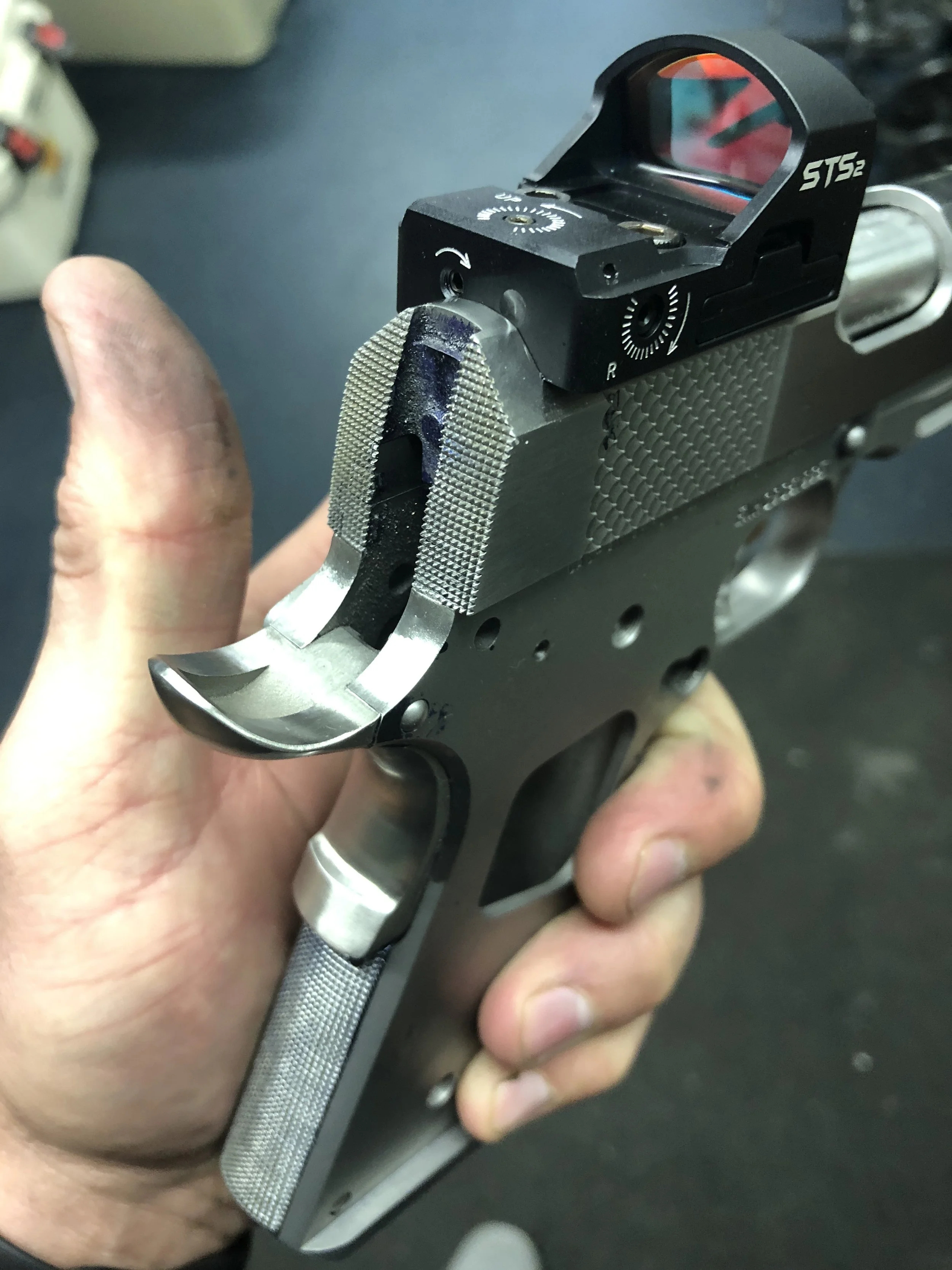 Our 1911 based customs are second to none. Everything that you have ever seen done to a 1911 we can do and more besides. Our metal checkering is all hand cut, not the mass production CNC cut checkering that you see so much of today. Each part in our custom 1911’s is tediously hand fit, so that when finished it performs and looks like a fine Swiss watch. Not only are the guns appealing to the eye but they also provide you with the most accurate and reliable handgun available today.